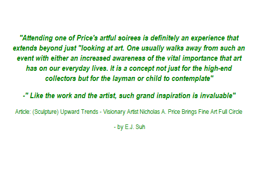 Nicholas A. Price is an internationally acclaimed visual artist with a long track record in creating unique works of art - he exclusively creates these one-of-a-kind artworks from his studio with his own hands for our client's homes, businesses and projects. Every piece is guaranteed to be unique and comes with a certificate of authenticity.